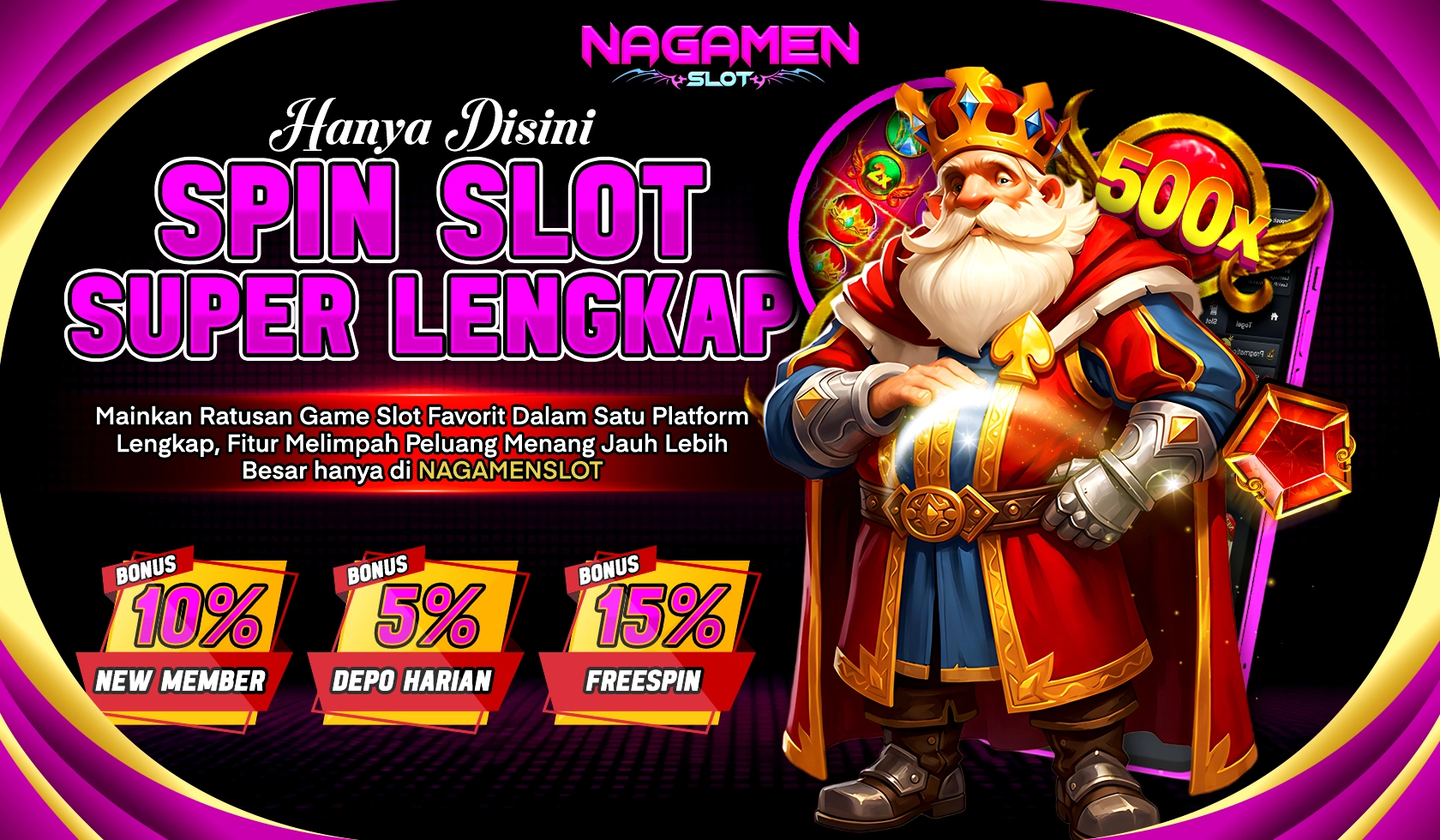 Ingin menang besar di game slot? NAGAMENSLOT menghadirkan ratusan slot dari provider ternama seperti Pragmatic Play, PG Soft, Habanero, dan lainnya. Nikmati fitur Buyspin, Free Spin, Scatter, dan Jackpot Progresif. Bonus harian dan event slot rutin siap menambah cuan Anda!