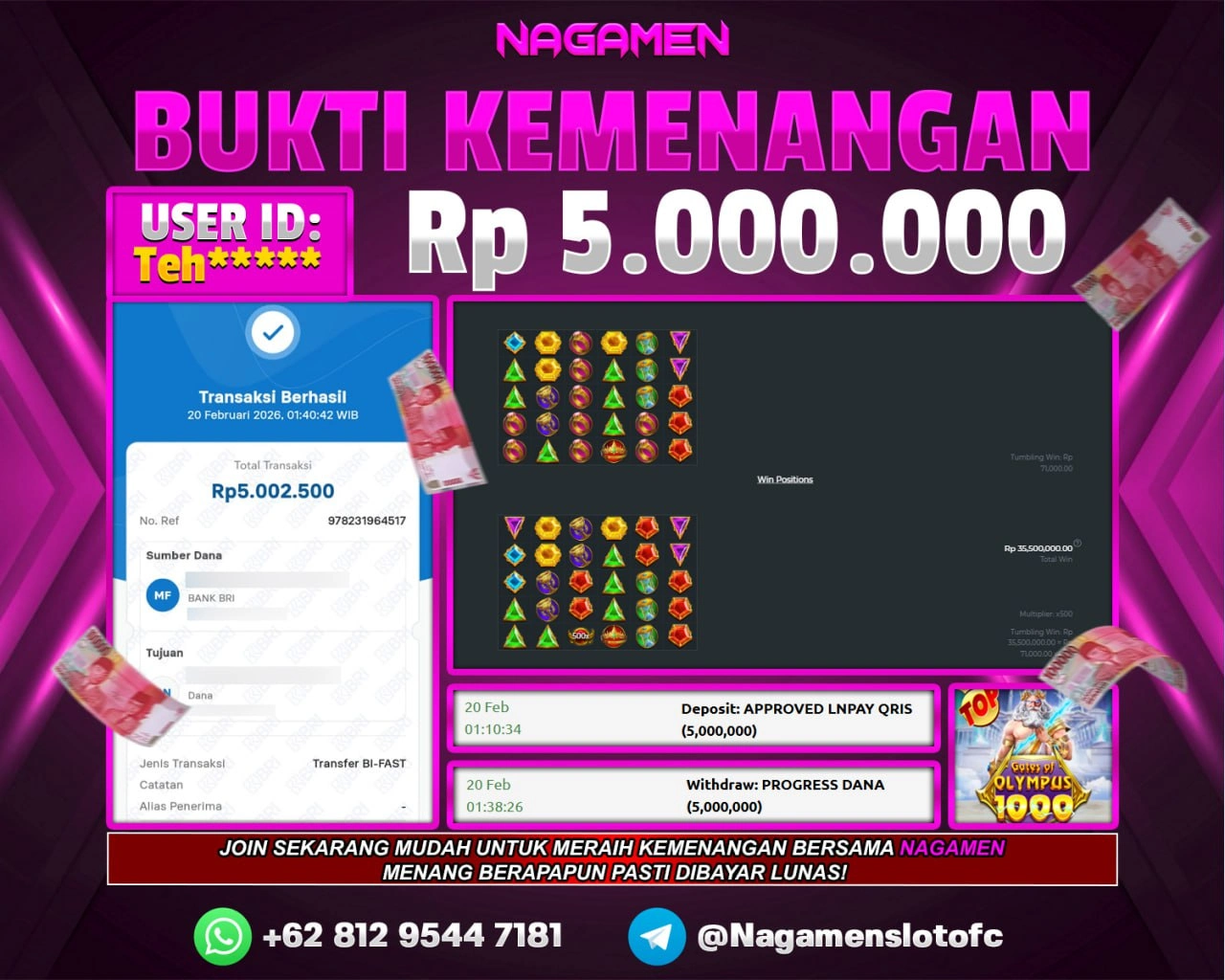 π Bukti transaksi ASLI & VALID sudah kami siapkan, walau disamarkan demi keamanan data kamu. Tapi jangan khawatir, pemenang dapat bukti lengkap tanpa sensor sesuai aturan kami.