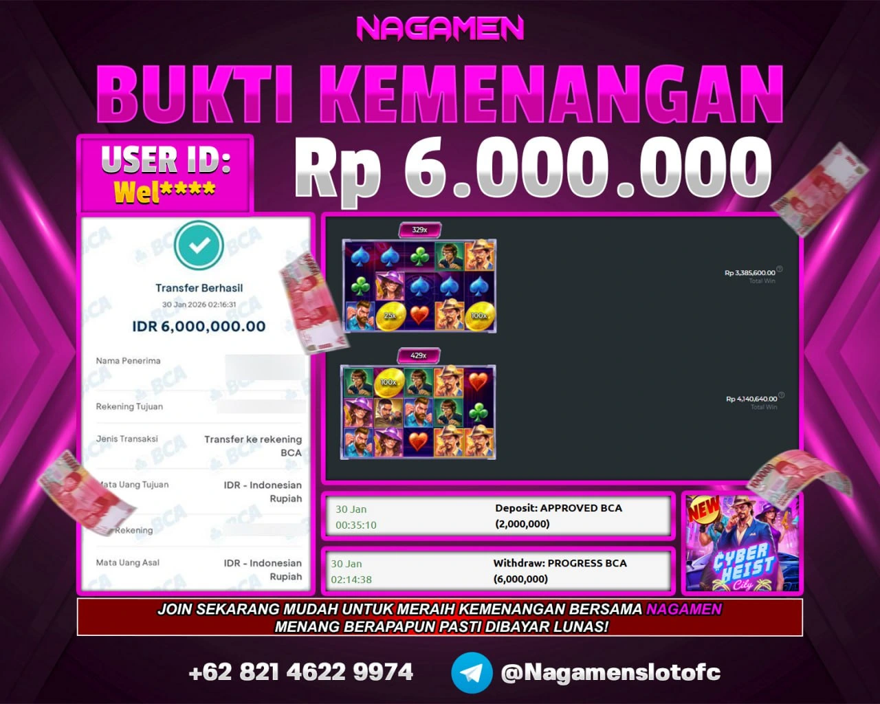 π Bukti transaksi ASLI & VALID sudah kami siapkan, walau disamarkan demi keamanan data kamu. Tapi jangan khawatir, pemenang dapat bukti lengkap tanpa sensor sesuai aturan kami.